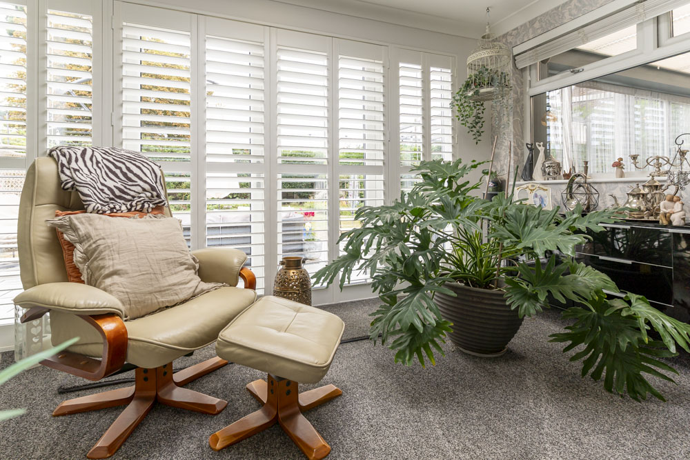 With feature stone fireplace and casement doors to the south facing rear garden with plantation shutters.
