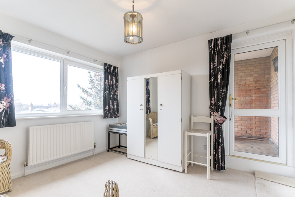 Front aspect bedroom with built in storage cupboard.