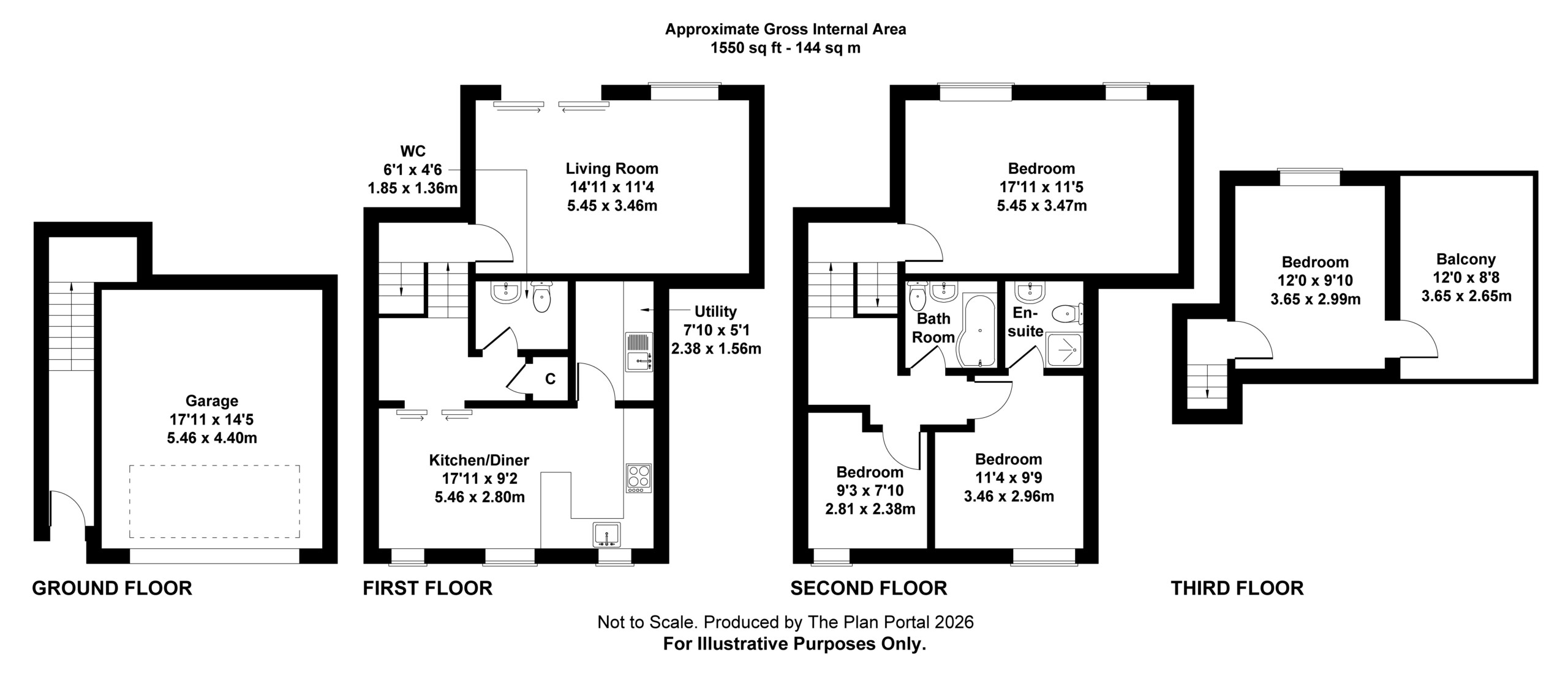 Bedroom 4: 3.65m x 2.99m / 12ft x 9ft 10