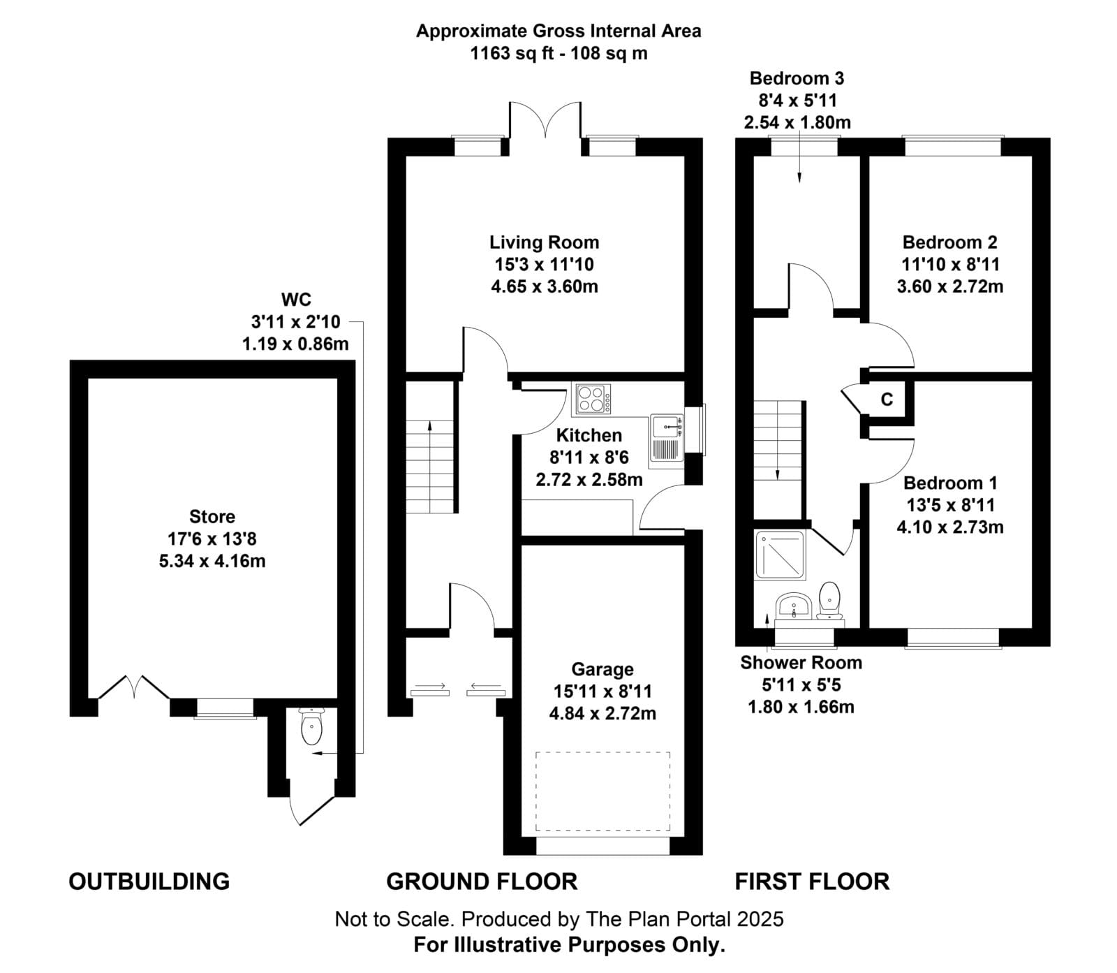 Garage: 4.84m x 2.72m / 15ft 10 x 8ft 11